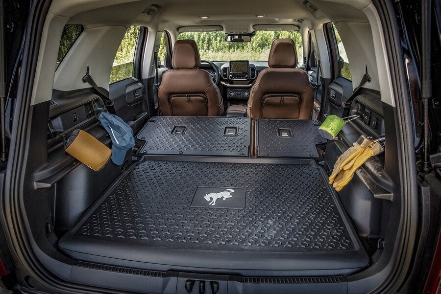 The Bronco® Sport SUV goes in prepared with durable surfaces and creative cargo areas, like the rear-flip-up glass feature.