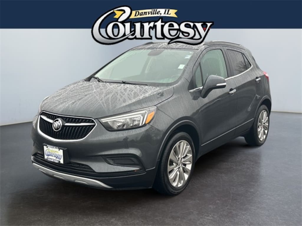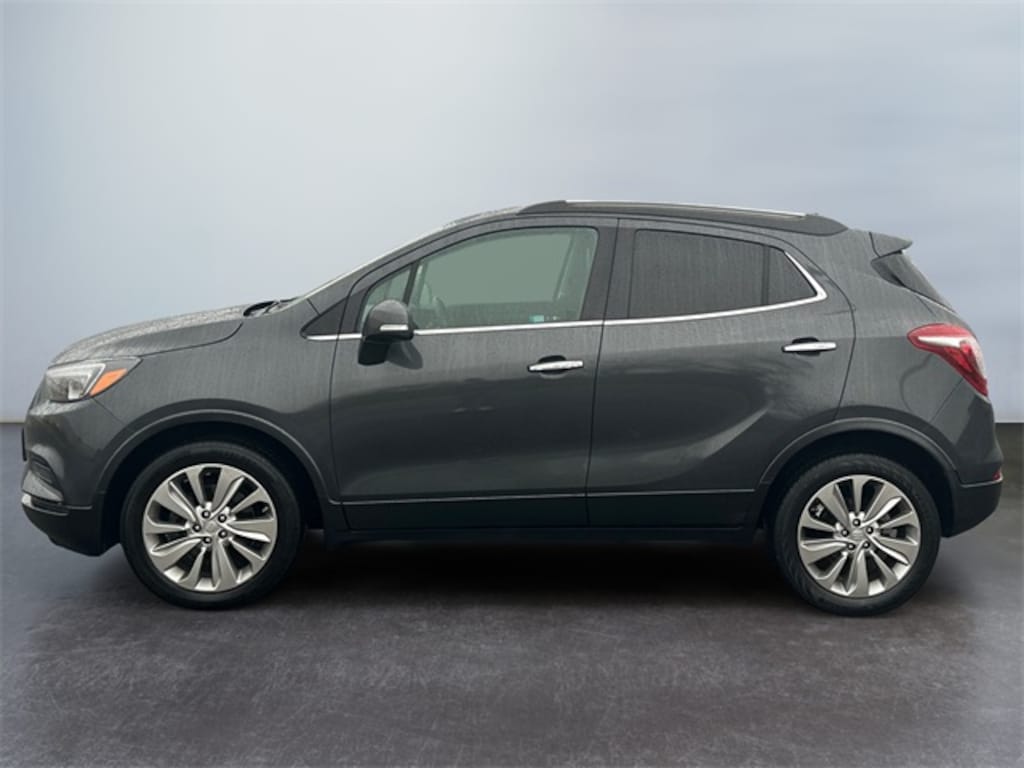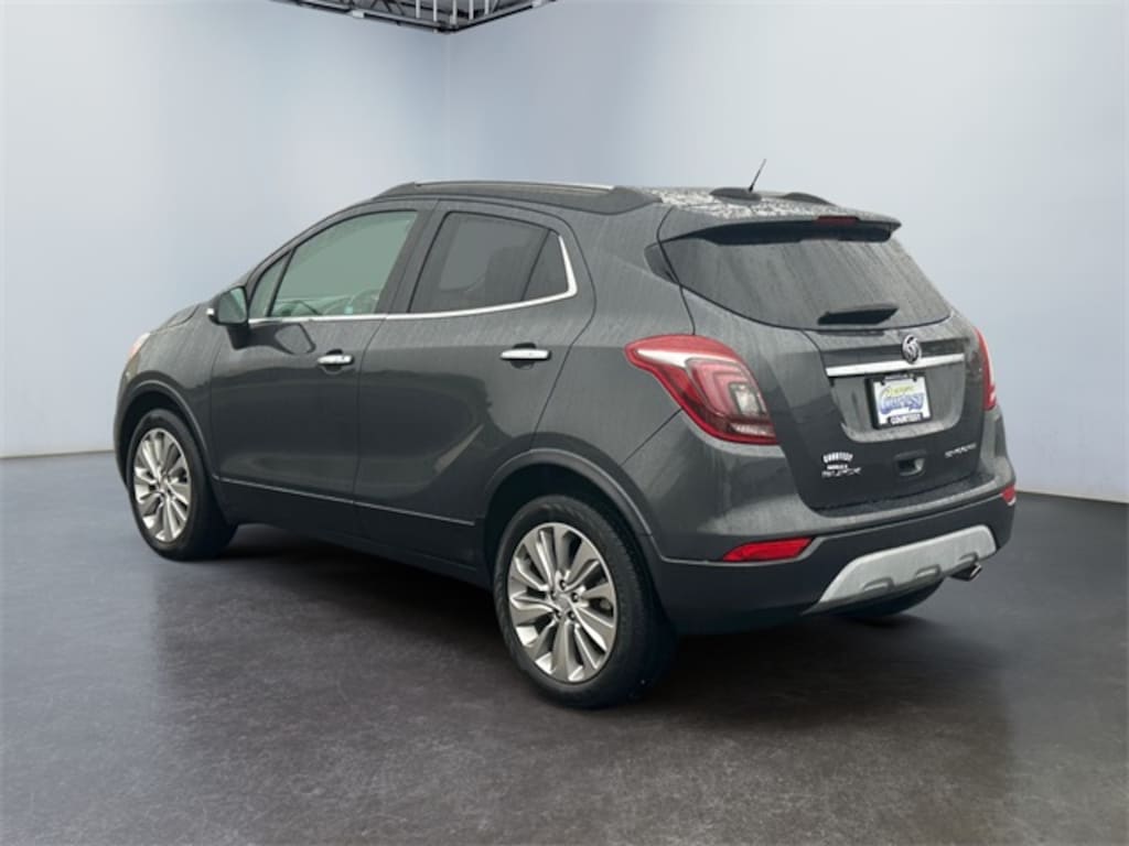 Graphite Gray Metallic 2018 Buick Encore Preferred FWD 6-Speed Automatic Electronic with Overdrive ECOTEC 1.4L I4 SMPI DOHC Turbocharged VVT 2-Way Manual Front Passenger Seat Adjuster, 3.53 Final Drive Axle Ratio, 4-Wheel Disc Brakes, 6 Speakers, 6-Speaker Audio System, 6-Way Power Driver Seat Adjuster, ABS brakes, Air Conditioning, Alloy wheels, AM/FM radio: SiriusXM, Apple CarPlay/Android Auto, Brake assist, Bumpers: body-color, Cloth w/Leatherette Seat Trim, Compass, Delay-off headlights, Driver door bin, Driver vanity mirror, Driver's Seat Mounted Armrest, Dual front impact airbags, Dual front side impact airbags, Electronic Stability Control, Emergency communication system: OnStar Guidance, Exterior Parking Camera Rear, Front anti-roll bar, Front Bucket Seats, Front License Plate Bracket, Front reading lights, Front wheel independent suspension, Fully automatic headlights, Heated door mirrors, Illuminated entry, Knee airbag, Low tire pressure warning, Occupant sensing airbag, Outside temperature display, Overhead airbag, Panic alarm, Passenger door bin, Passenger vanity mirror, Power door mirrors, Power driver seat, Power steering, Power windows, Preferred Equipment Group 1SB, Radio data system, Radio: Buick Infotainment System AM/FM Stereo, Rear seat center armrest, Rear side impact airbag, Rear window defroster, Rear window wiper, Remote keyless entry, Ride & Handling Suspension, Roof rack: rails only, Security system, SiriusXM Satellite Radio, Speed control, Speed-sensing steering, Split folding rear seat, Spoiler, Steering wheel mounted audio controls, Tachometer, Telescoping steering wheel, Tilt steering wheel, Traction control, Trip computer, Turn signal indicator mirrors, Variably intermittent wipers, Wheels: 18" Machined-Face Alloy.